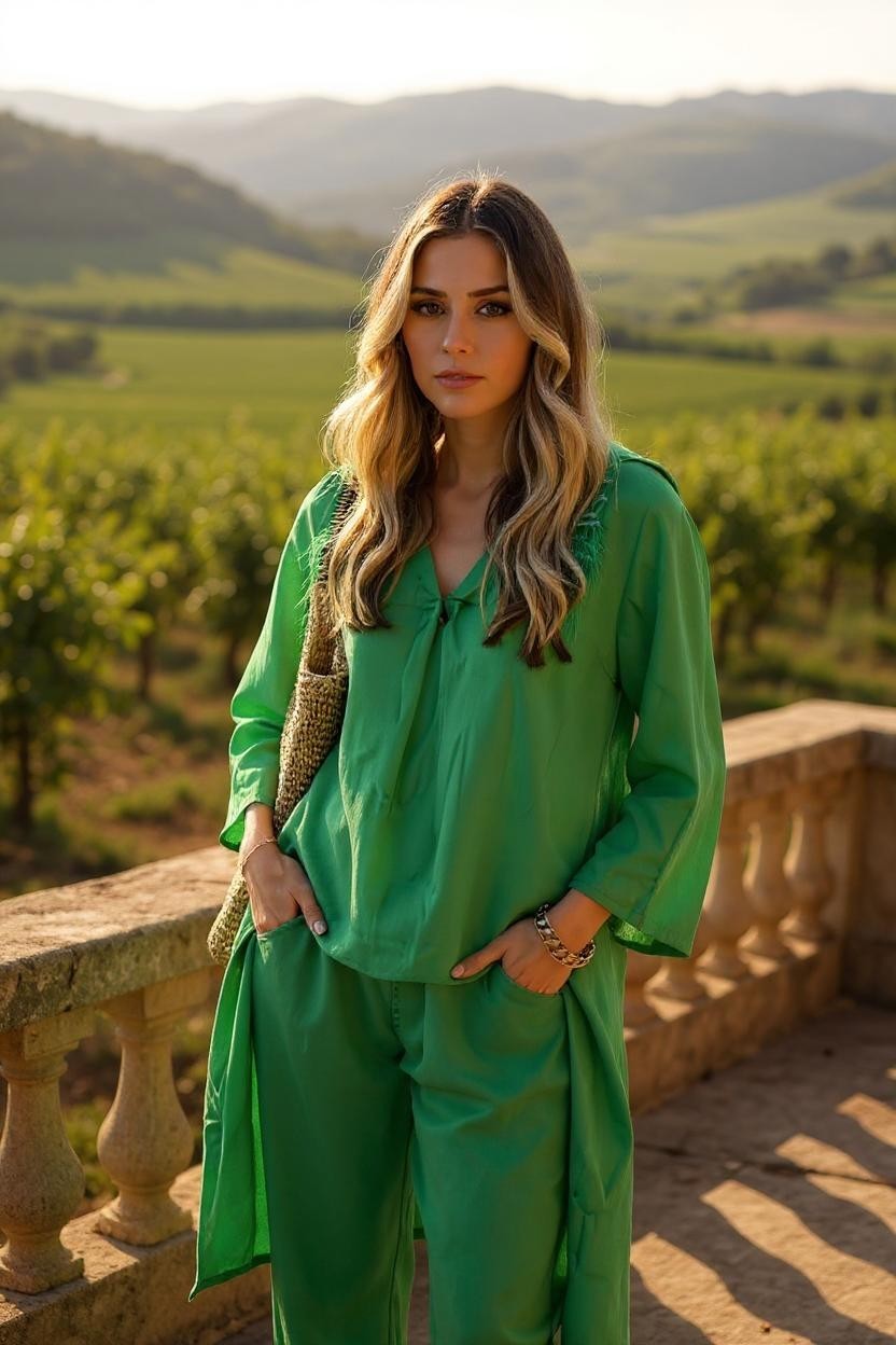 Norena™ ger dig det bästa av två världar – komfort och stil. Detta lätta, luftiga set med topp och byxor är perfekt både för vardagsbruk och mindre tillställningar, utan att kompromissa med din rörelsefrihet.